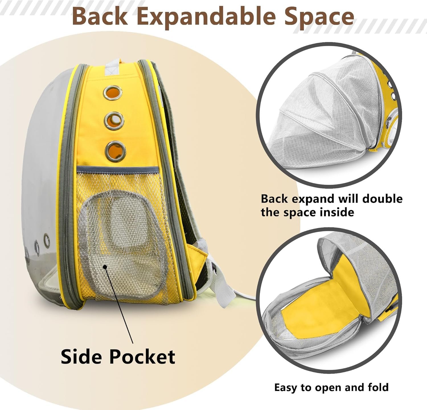 Cat Backpack Carrier, Expandable Breathable Pet Bubble Backpack for Cat Small Dog Airline Approved Pet Travel Carrying Bag for Hiking, Travel, Camping & Outdoor Up to 13 Lbs Yellow