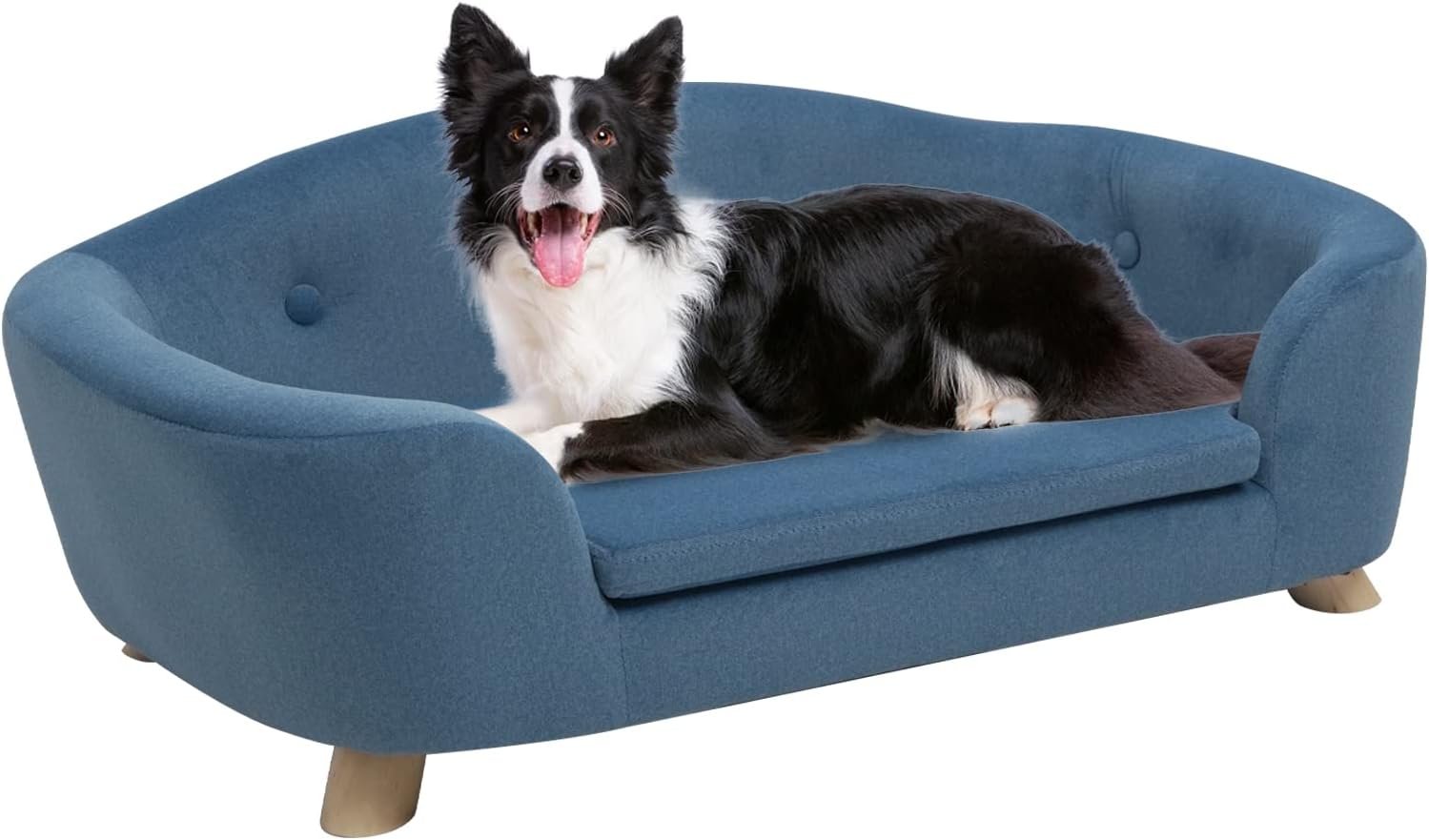 Large Dog Couch, 35″ Wide Pet Sofa for Large and Medium Dogs with Removable Mattress Cover, Raised Dog Couch Velvet Lounging Bed with Anti-Slip Bottom(Navy Blue)